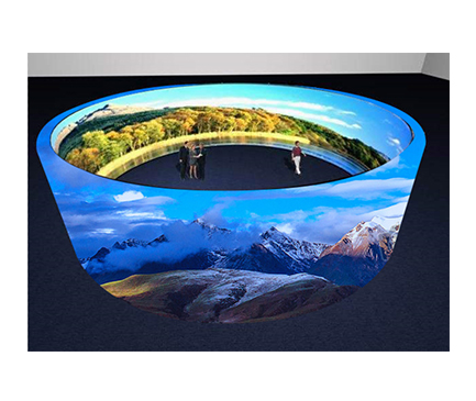讓LED顯示屏與天花板精妙地融合為一體,成為項目施工團隊遇到的一大難題。由于此次LED顯示屏安裝位置是在天花板,而且安裝弧度較小,如果是采用傳統LED顯示屏的安裝方式,只需在制作顯示屏鋼結構的時候做成弧形,再安裝常規的硬模組即可。